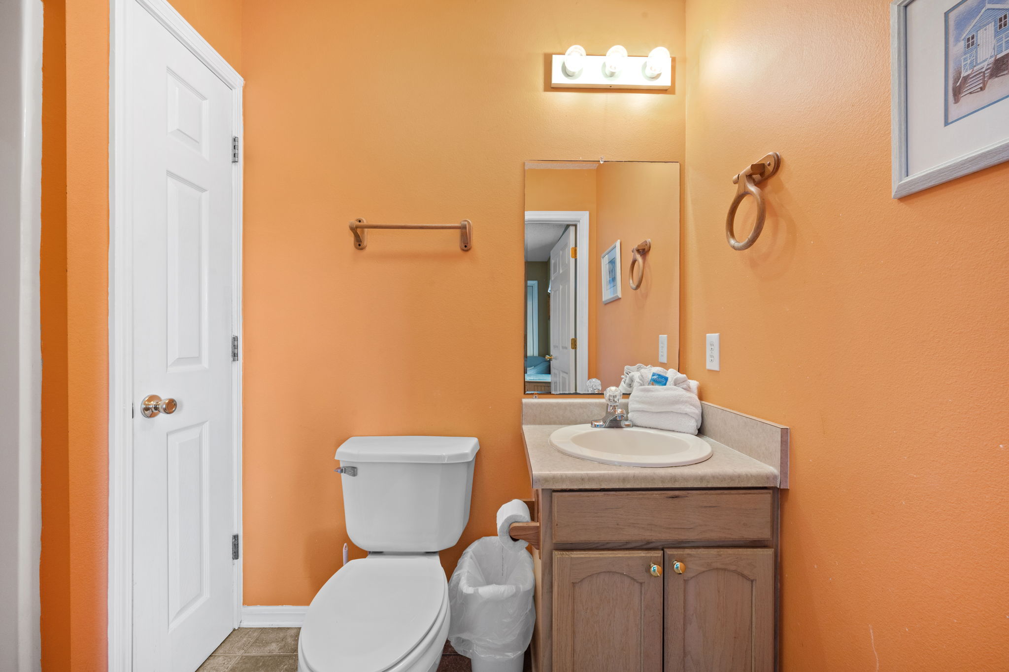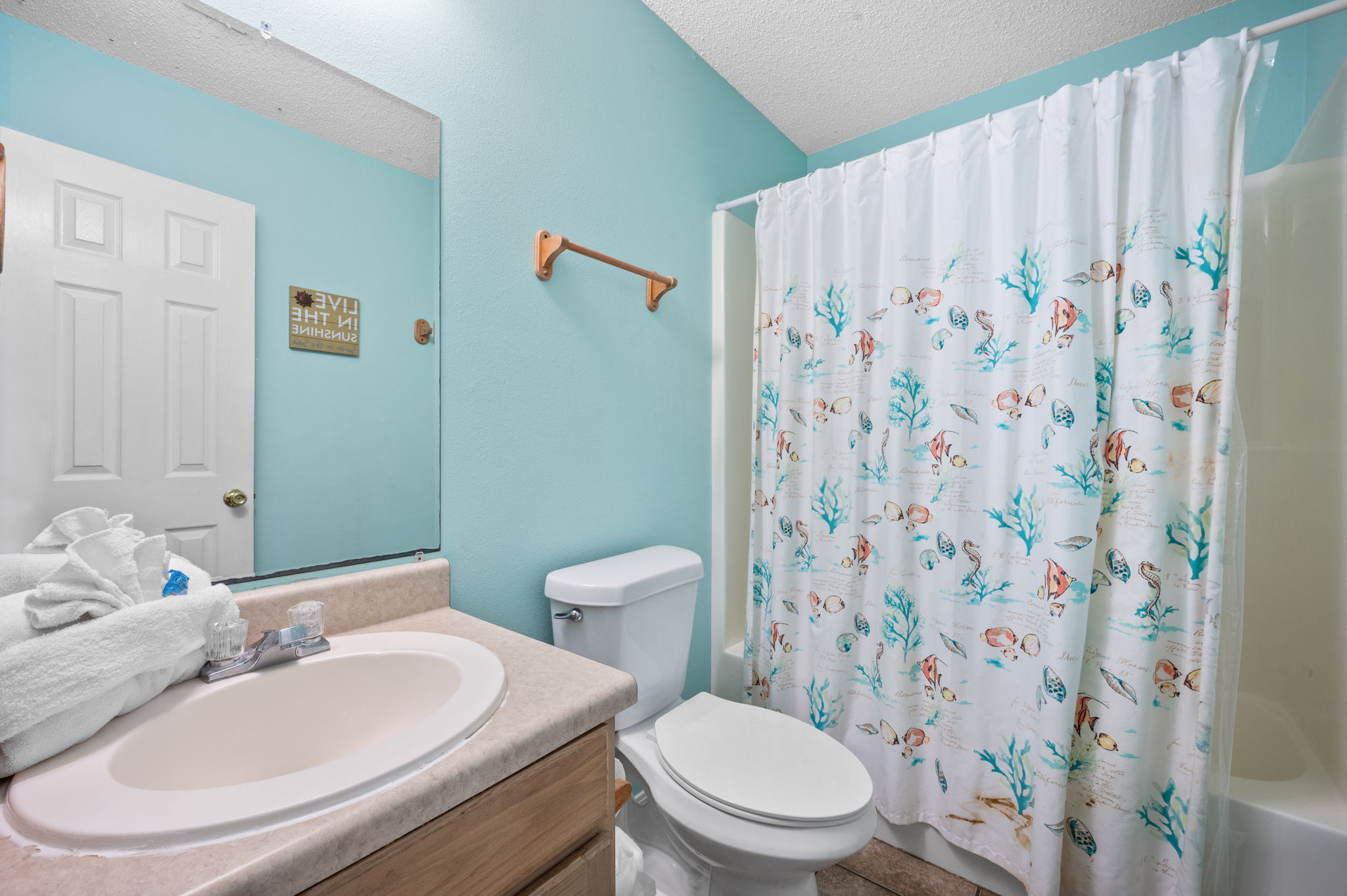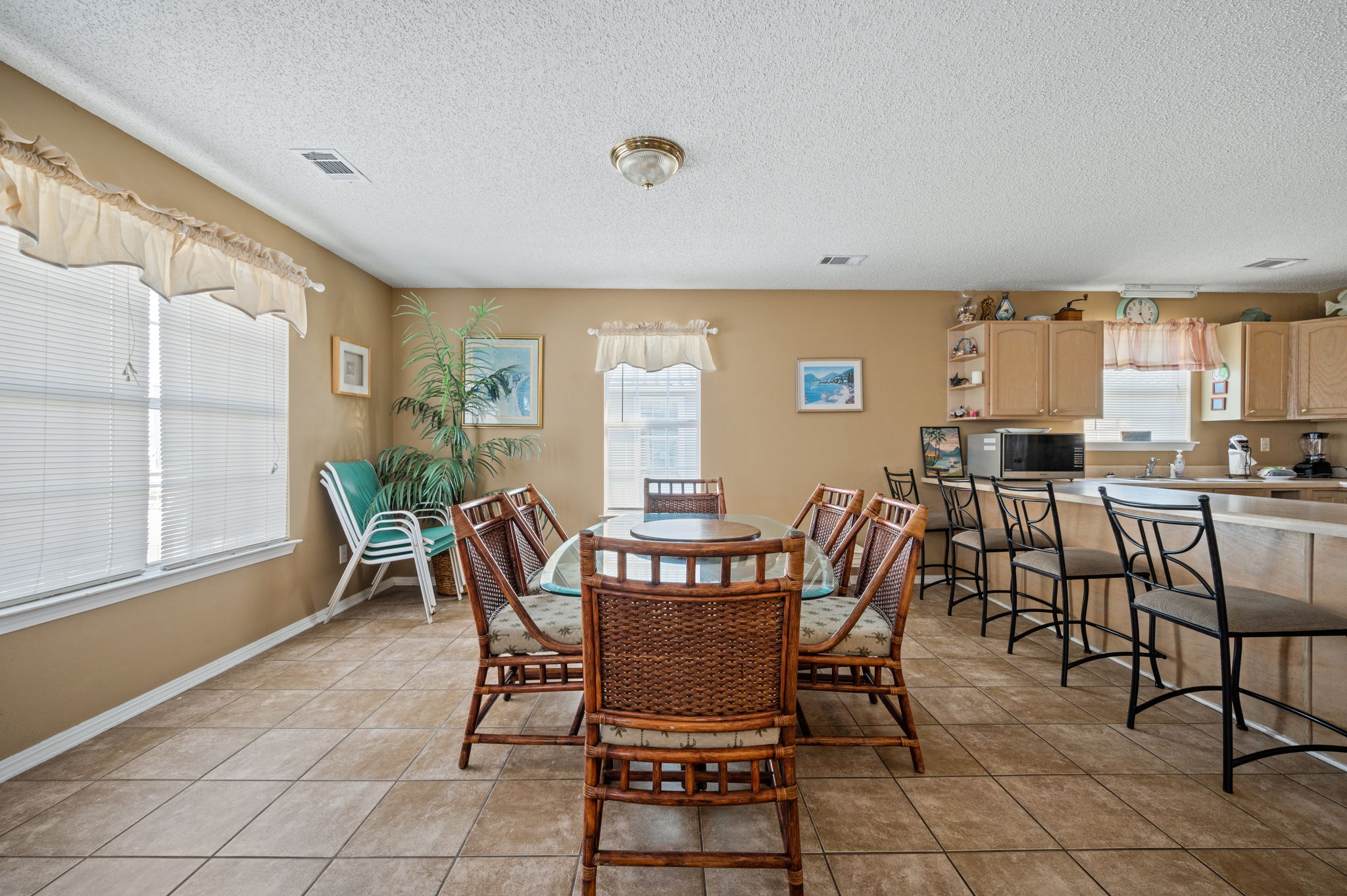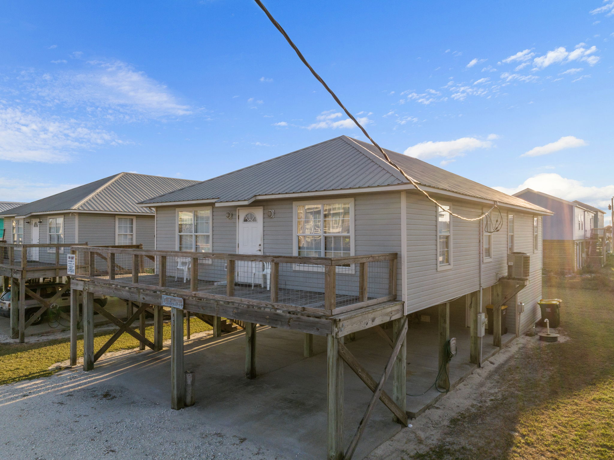 The front deck faces east- perfect for enjoying a Gulf coast sunrise, and is shaded in the afternoon for enjoying the view of the Gulf and the constant Gulf breezes. This house is located approximately 300 feet (length of a football field) from the Gulf- our street (Bernard Court East) dead-ends on the beach- there is no cutting through other folk’s property, or walking great distances to gain public beach access.