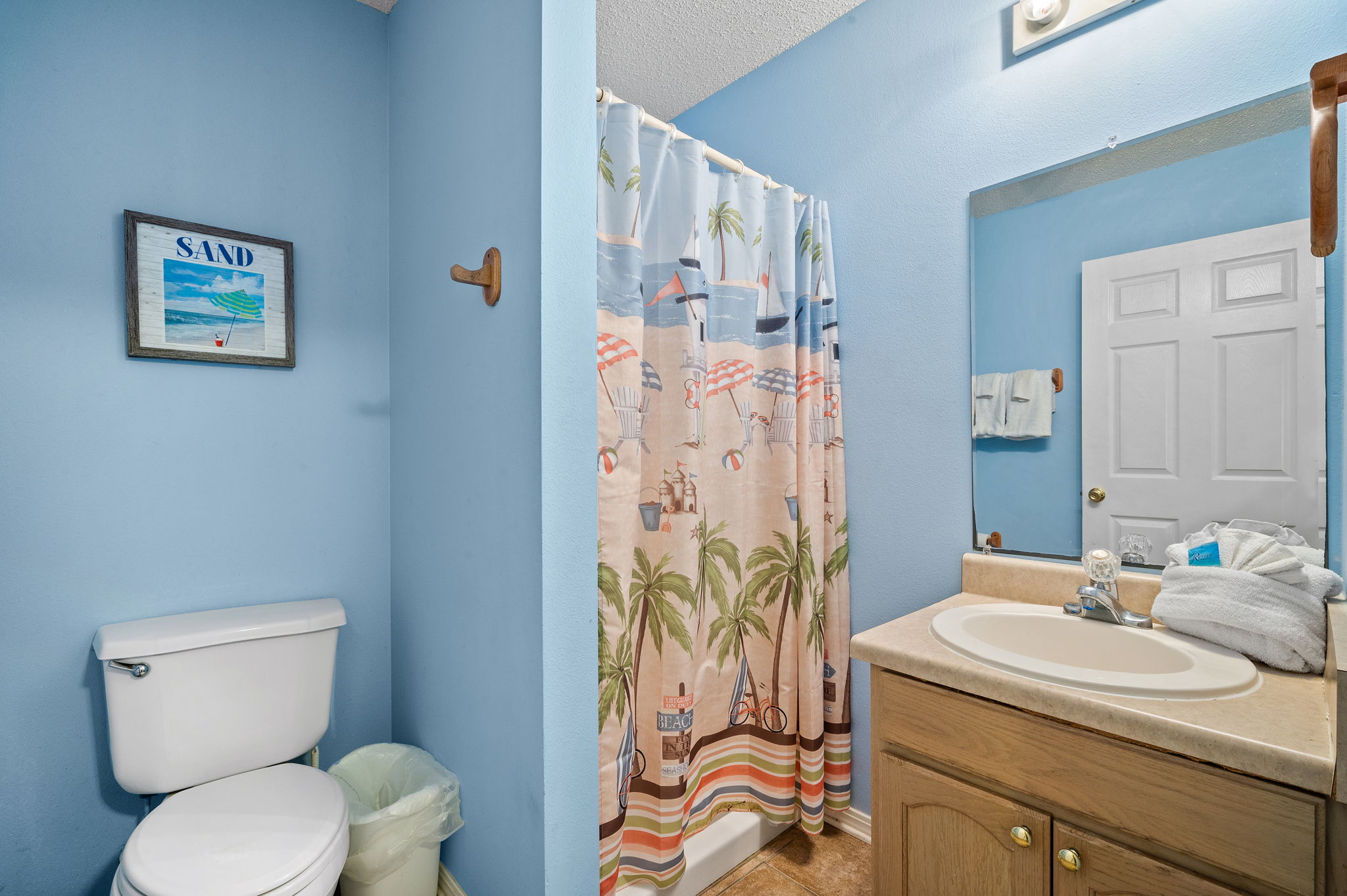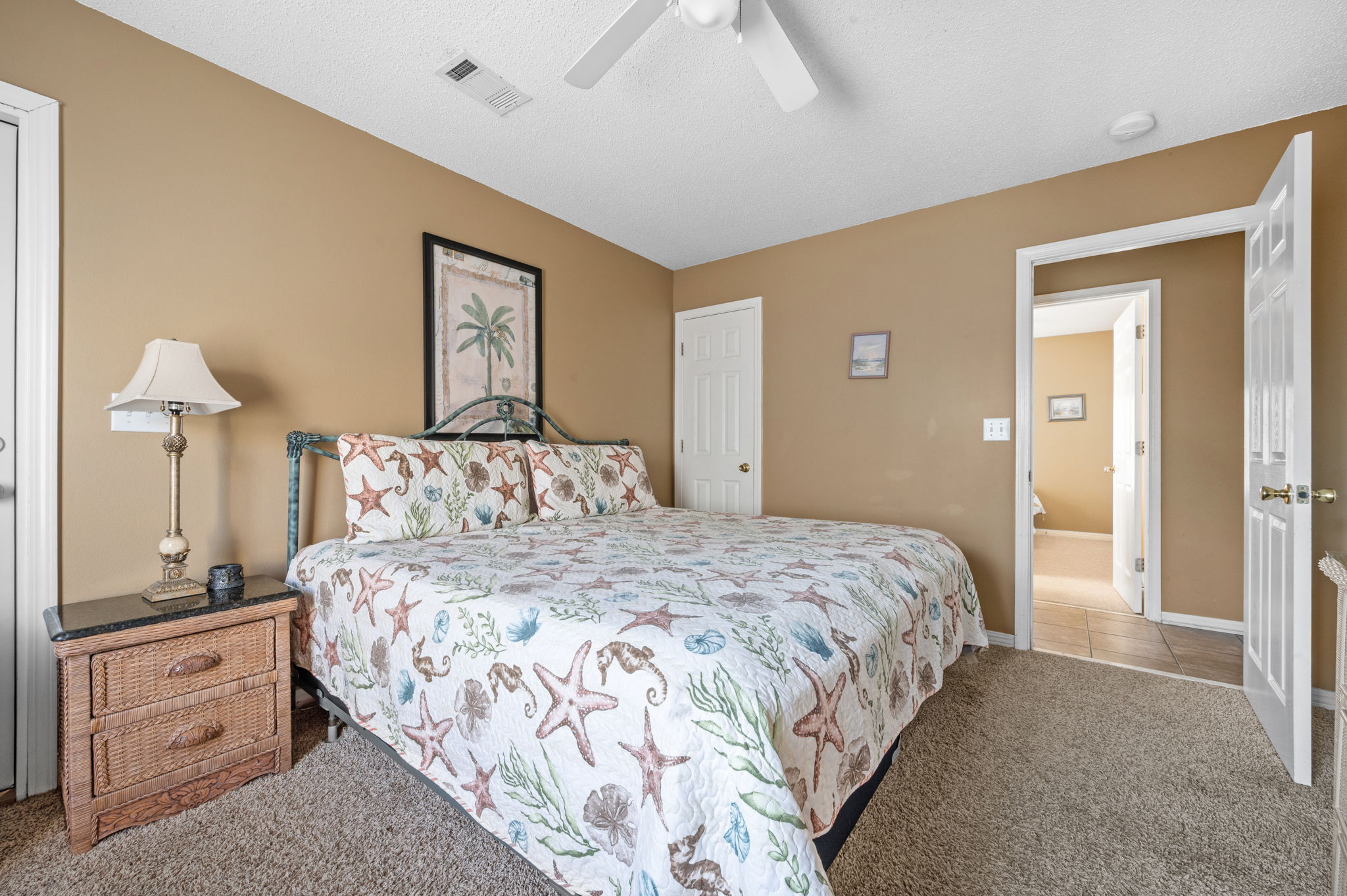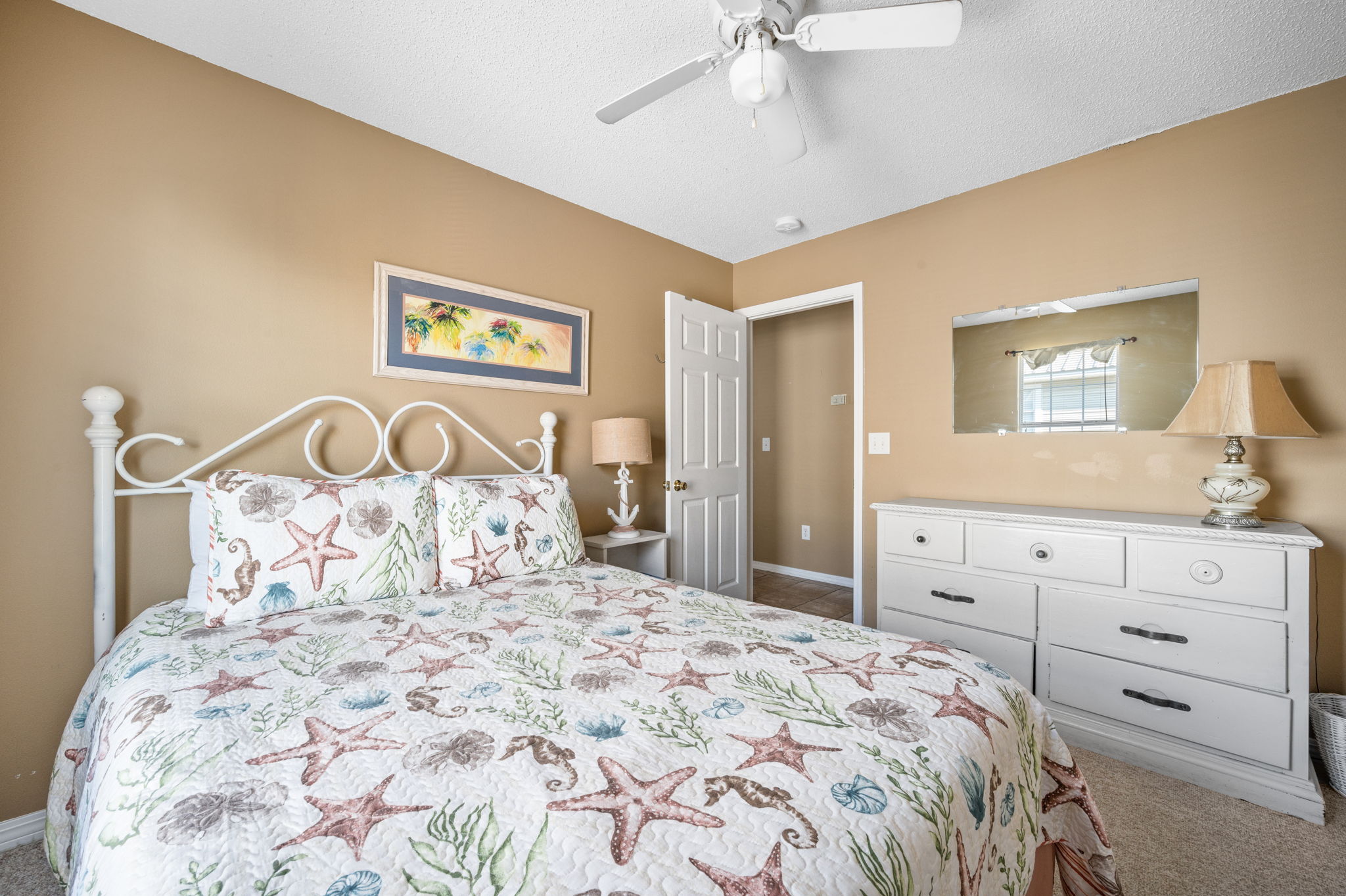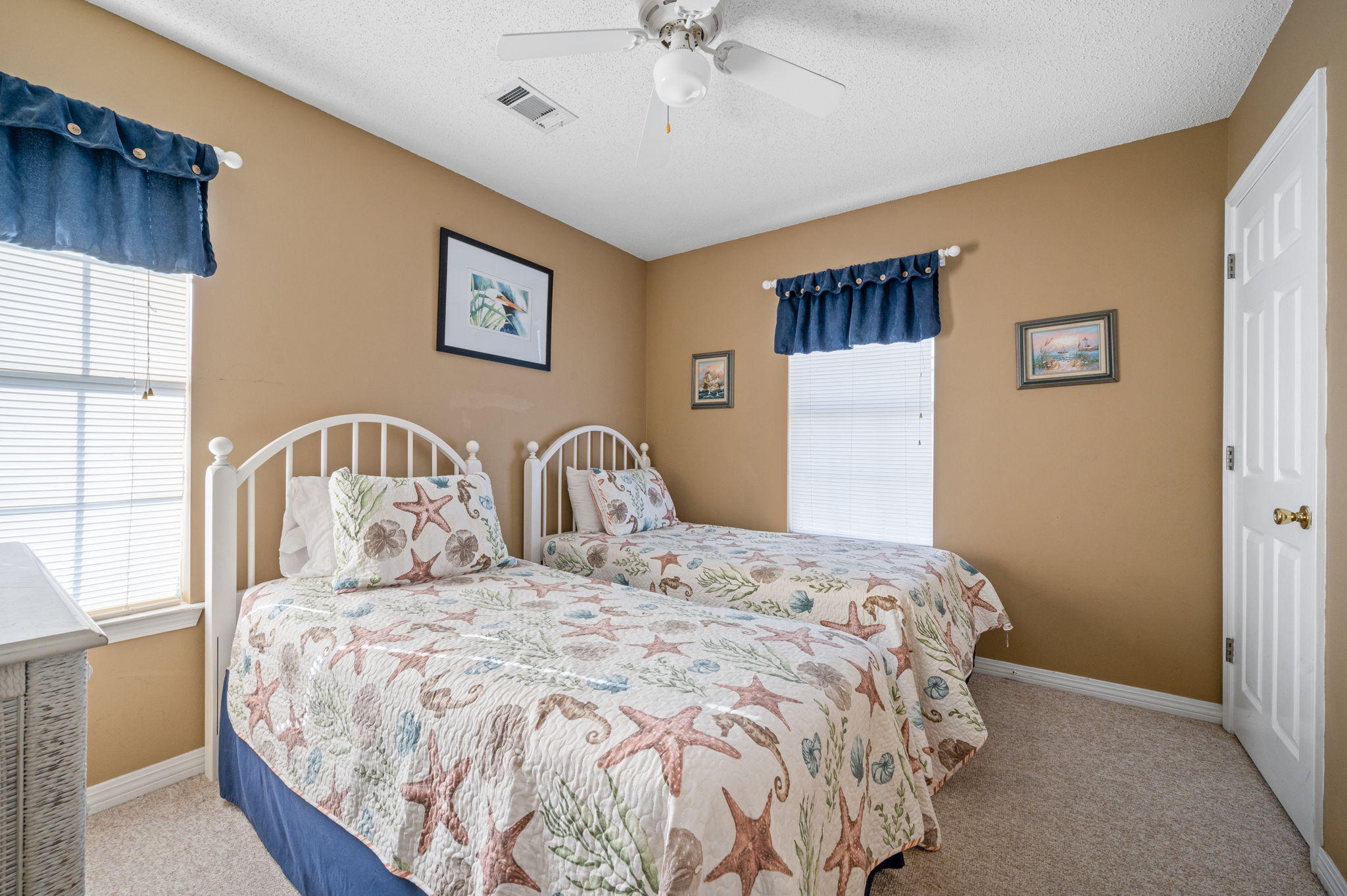 The master bedroom has a king size bed; another bedroom has twin beds; and, the remaining two bedrooms each have queen size beds